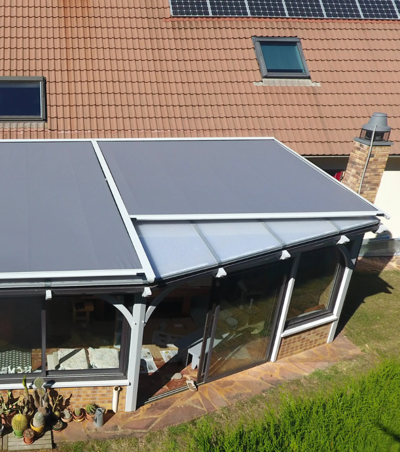 Le store de véranda et le store toiture de véranda assurent confort et protection solaire. Ils filtrent les rayons UV, réduisent la chaleur et régulent la luminosité. Ces installations permettent de profiter pleinement de votre véranda toute l’année, tout en préservant son esthétique et en optimisant l’ambiance de votre espace.